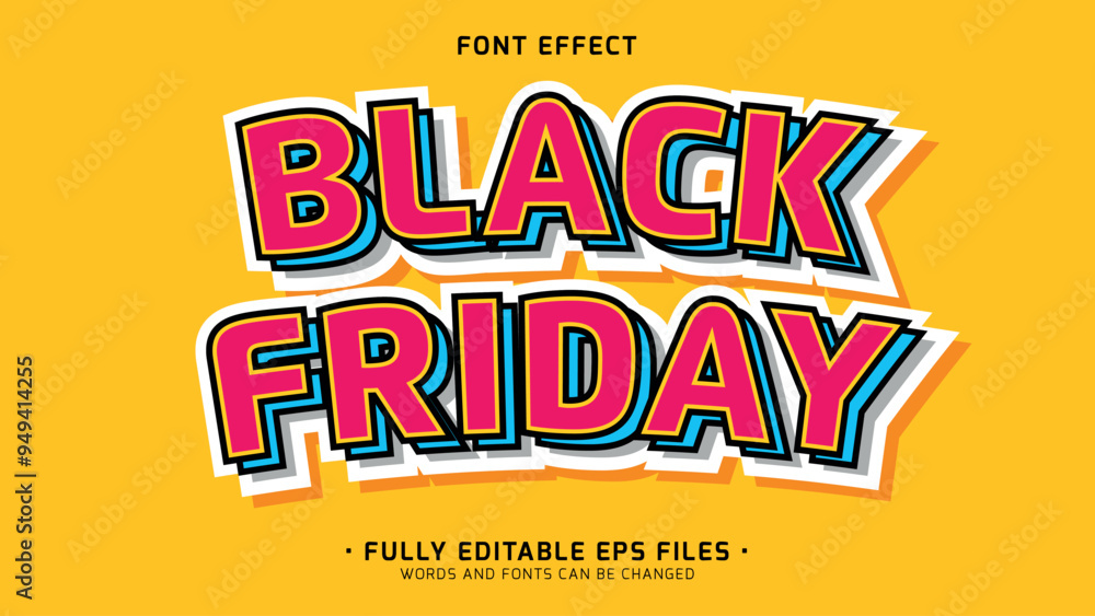 The watermark will not be included on Wall mural.: Minimalists sticker style vector text effect with black friday word font effect