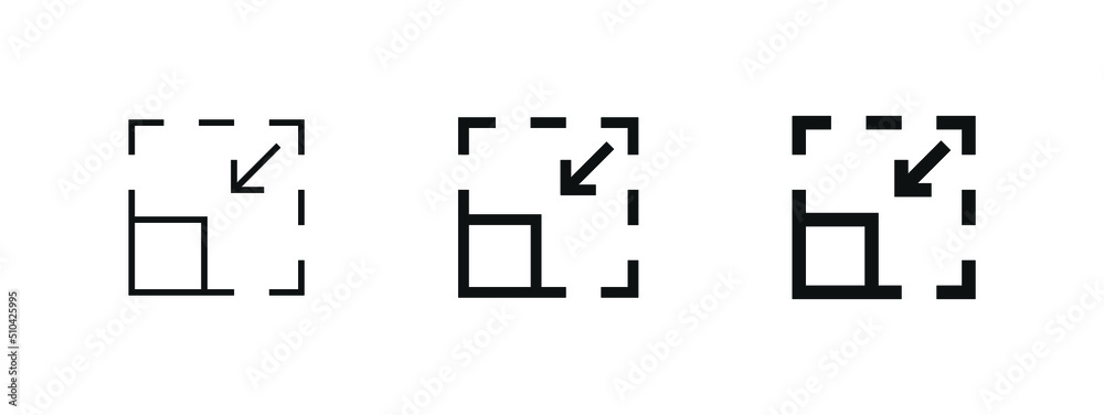 Wall mural minimize icon arrow meeting point, rally compact size small scale arrow icons . shrink icon resize i