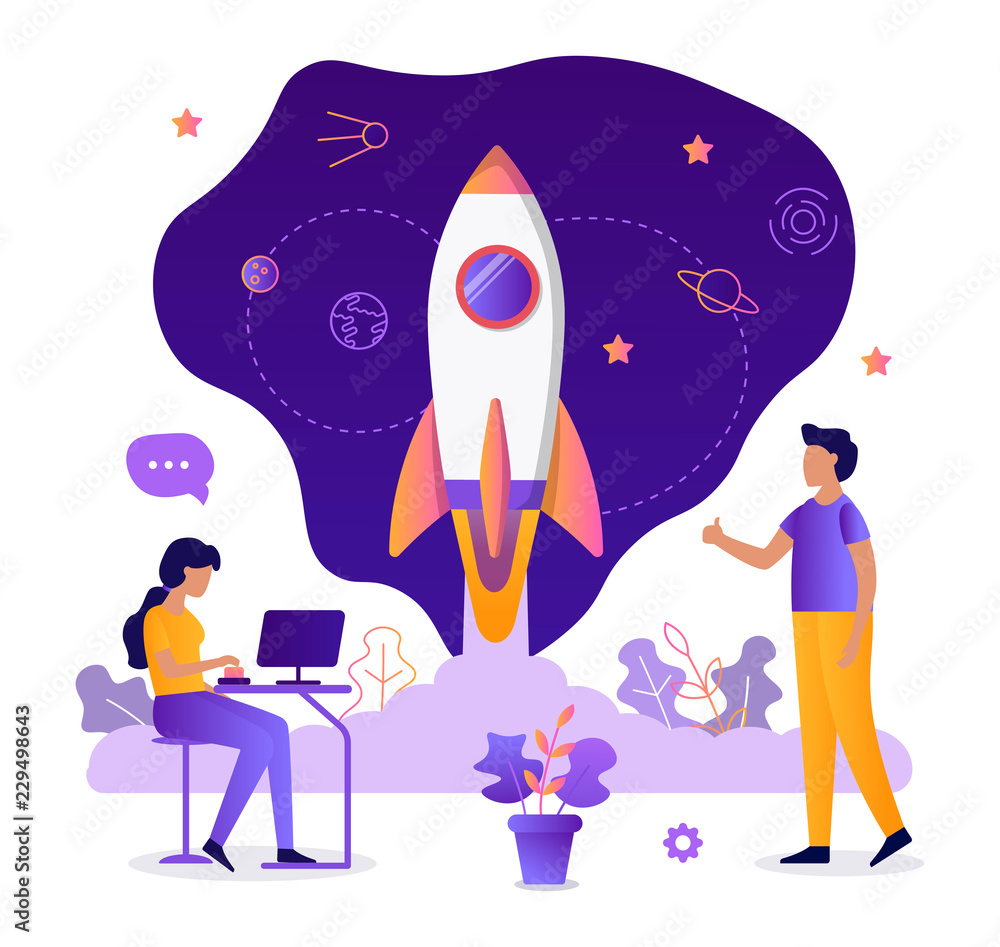Wall mural missile launch. start new business projects. startup concept. teamwork. web development. flat vector - Wall murals Wall mural missile launch. start new business projects. startup concept. teamwork. web development. flat vector - Wall murals