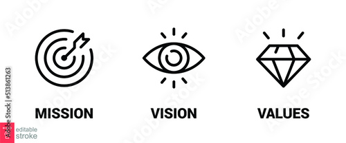 The watermark will not be included on Wall mural.: Mission - vision - values - web page template - modern flat design concept - simple outline style - thin l