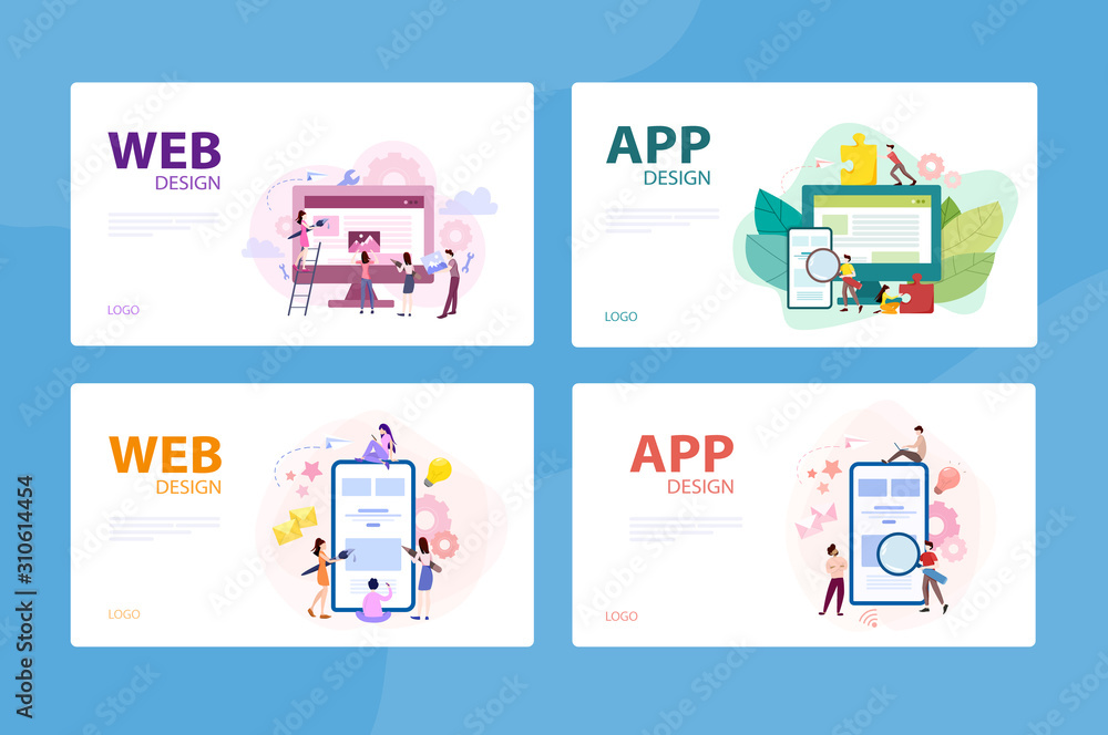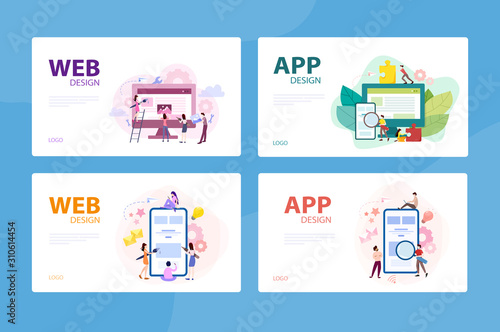 The watermark will not be included on Wall mural.: Mobile app and web development banner concept set -