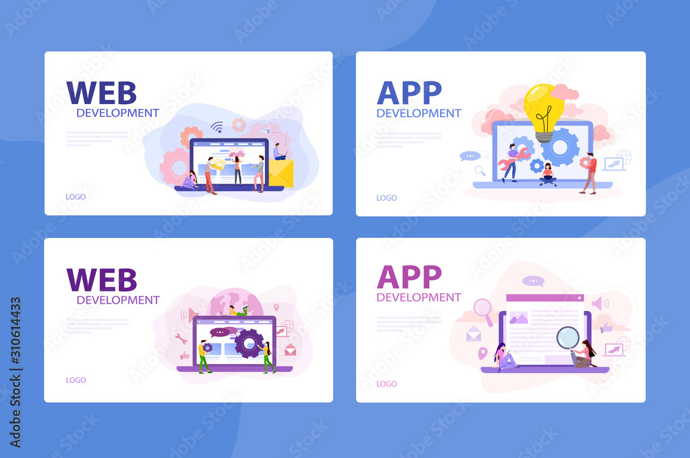 The watermark will not be included on Wall mural.: Mobile app and web development banner concept set -
