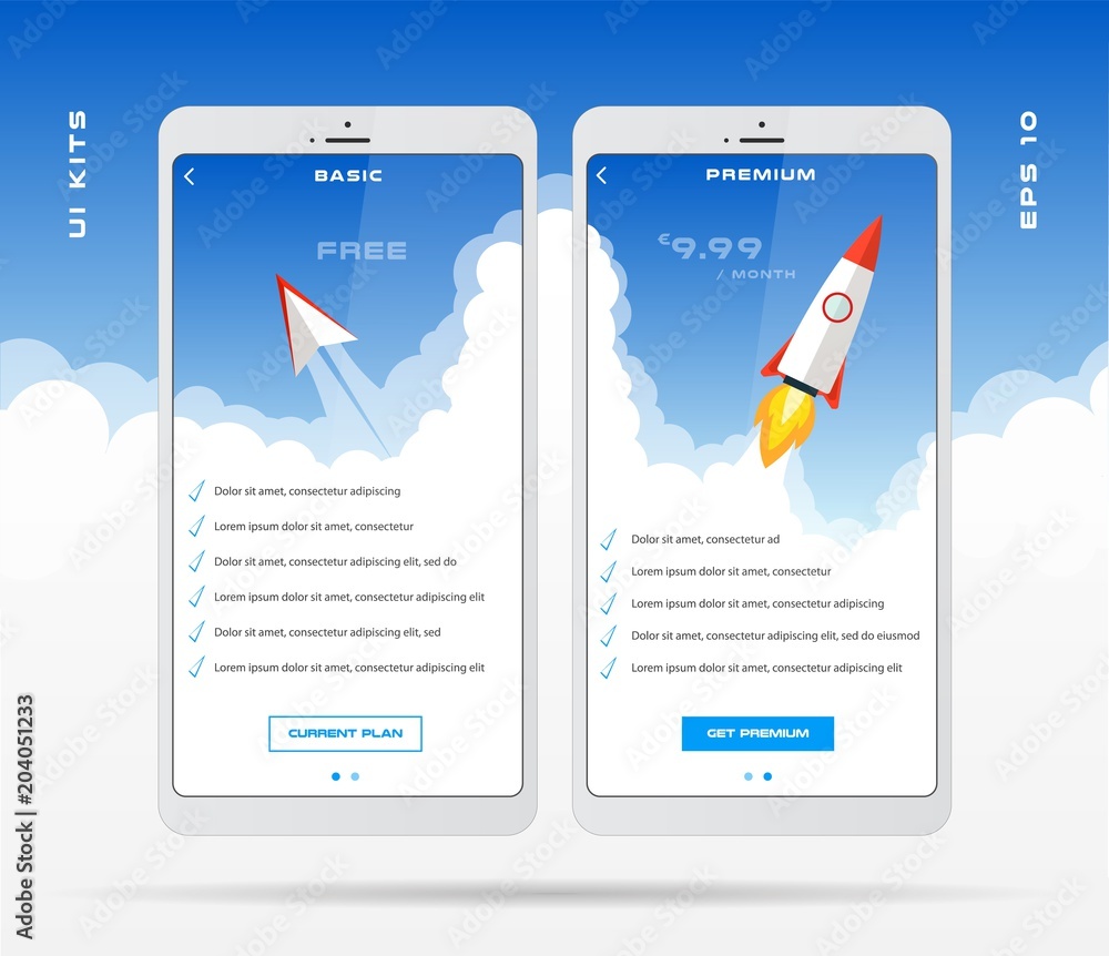 Wall mural mobile app design template for price list set, tariff plan, pricing table for business with icons an - Wall murals Wall mural mobile app design template for price list set, tariff plan, pricing table for business with icons an - Wall murals