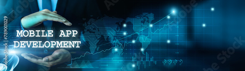 Wall mural mobile app development and fintech innovations. businessmen hold financial services and transaction  - Wall murals Wall mural mobile app development and fintech innovations. businessmen hold financial services and transaction - Wall murals