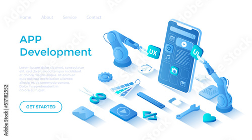 Wall mural : Mobile app development ui ux design, seo optimization - adaptive layout application web interface on