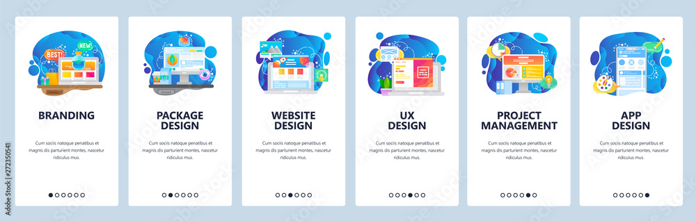 Wall mural : Mobile app onboarding screens - digital marketing, branding, mobile app ui design, project management