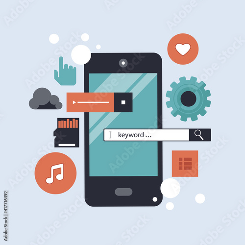 Wall mural mobile application and mobile app development concept. project development and business ideas. flat  - Wall murals Wall mural mobile application and mobile app development concept. project development and business ideas. flat - Wall murals