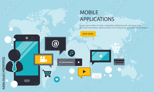 Wall mural mobile application and mobile app development concept. project development and business ideas. flat  - Wall murals Wall mural mobile application and mobile app development concept. project development and business ideas. flat - Wall murals
