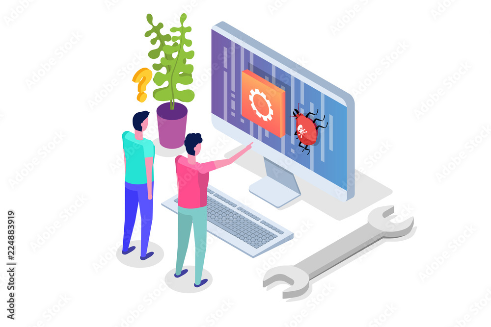 The watermark will not be included on Wall mural.: Mobile application development, testing and prototyping process isometric vector - fpp interface buil