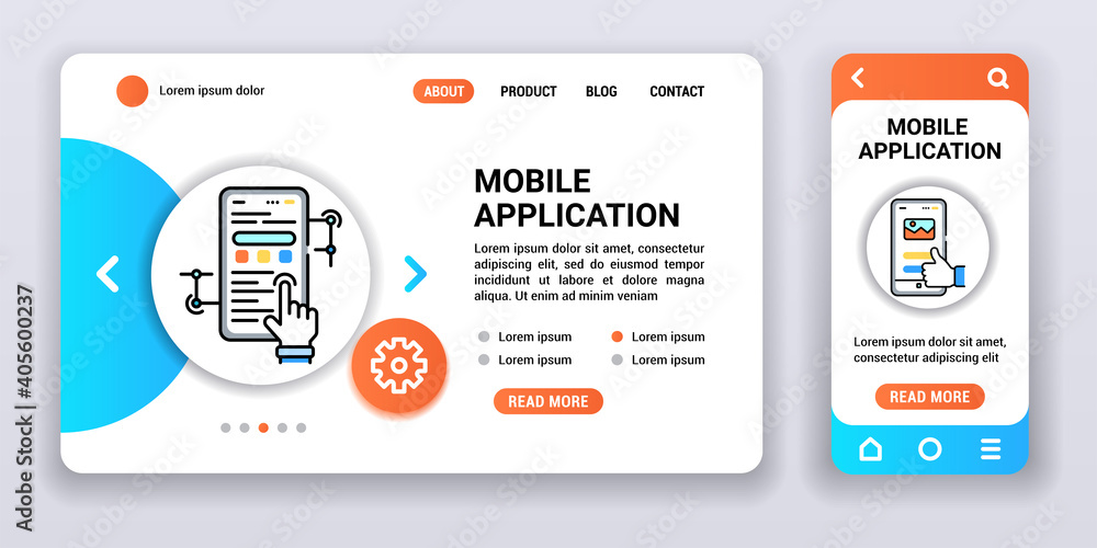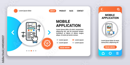 Wall mural mobile application web banner and mobile app kit. app development. outline vector illustration