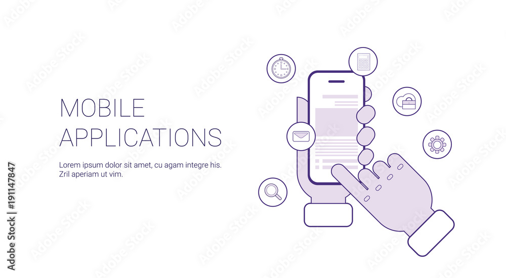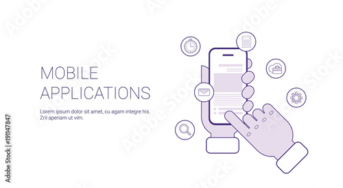 The watermark will not be included on Wall mural.: Mobile applications business concept template web banner with copy space vector illustration