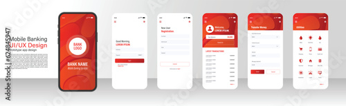 Wall mural mobile banking app smartphone ui ux design vector templates set. financial services online web page