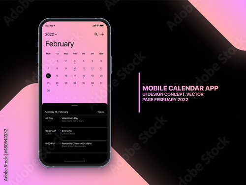 Wall mural mobile calendar app concept february 2022 page with to do list and tasks ui ux design vector on real - Wall murals Wall mural mobile calendar app concept february 2022 page with to do list and tasks ui ux design vector on real - Wall murals
