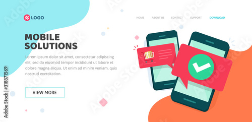 Wall mural : Mobile development or solution service agency website template design vector layout or mockup flat c
