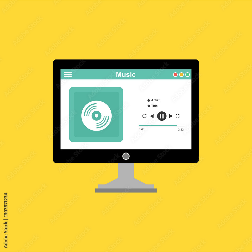 The watermark will not be included on Wall mural.: Mobile music application interface design concept isolated on colored background flat vector illustr