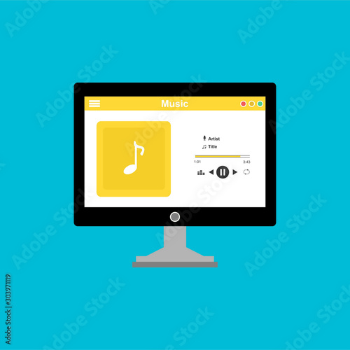 The watermark will not be included on Wall mural.: Mobile music application interface design concept isolated on colored background flat vector illustr