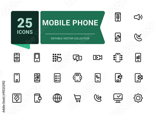 Wall mural mobile phone and smartphone icon set. related to device, phone and more. minimalistic web and ui ico