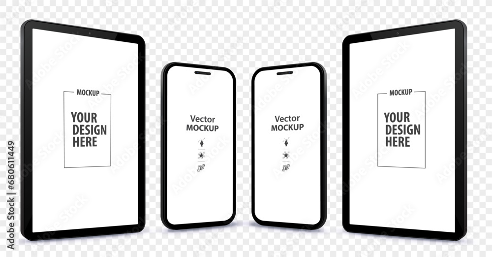 Wall mural mobile phone and tablet computer vector mockup illustration with perspective view. mobile device bla - Wall murals Wall mural mobile phone and tablet computer vector mockup illustration with perspective view. mobile device bla - Wall murals
