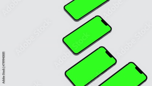 Wall mural mobile phone move in and move out show empty green screen on green background, application or websit - Wall murals Wall mural mobile phone move in and move out show empty green screen on green background, application or websit - Wall murals