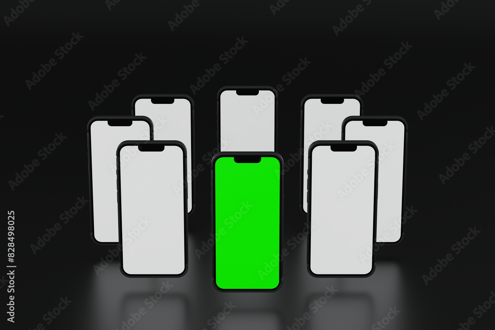 The watermark will not be included on Wall mural.: Mobile phone show green screen display, application website presentation, 3d rendering -