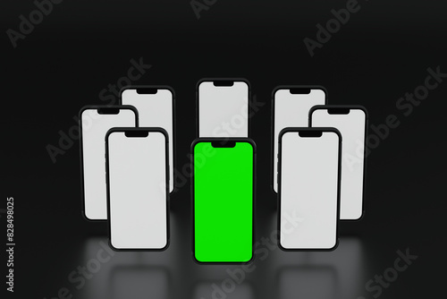 Wall mural mobile phone show green screen display, application website presentation, 3d rendering.