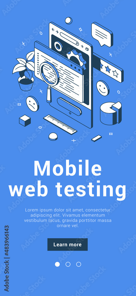 The watermark will not be included on Wall mural.: Mobile web testing debug application development browsing interface software banner isometric vector