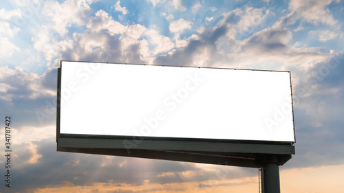 Wall mural : Mock up image: blank white billboard or large display with sun beams shining through clouds at sunse