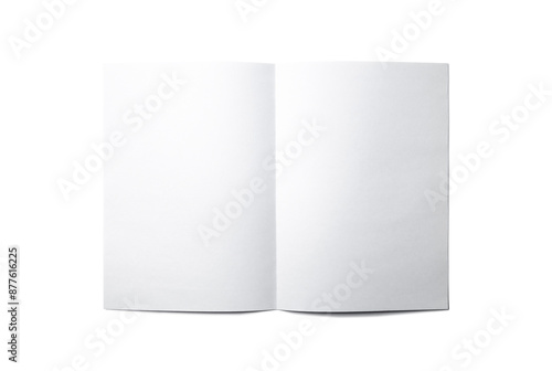 Wall mural : Mock up of a blank booklet with spread isolated on white - white sheet of paper with a vertical fold