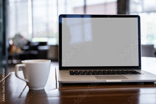 Wall mural : Mock up using laptop with blank screen computer modern