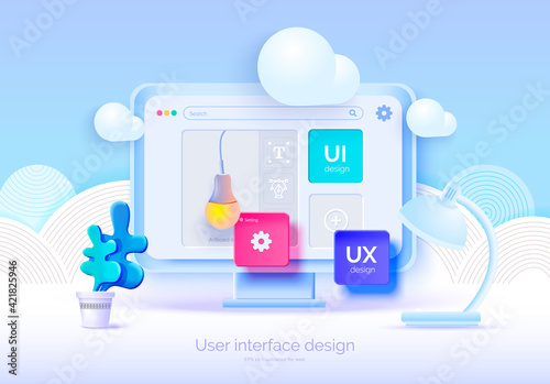 Wall mural mockup 3d monitor with user interface elements for web design software creator. user interface, user - Wall murals Wall mural mockup 3d monitor with user interface elements for web design software creator. user interface, user - Wall murals