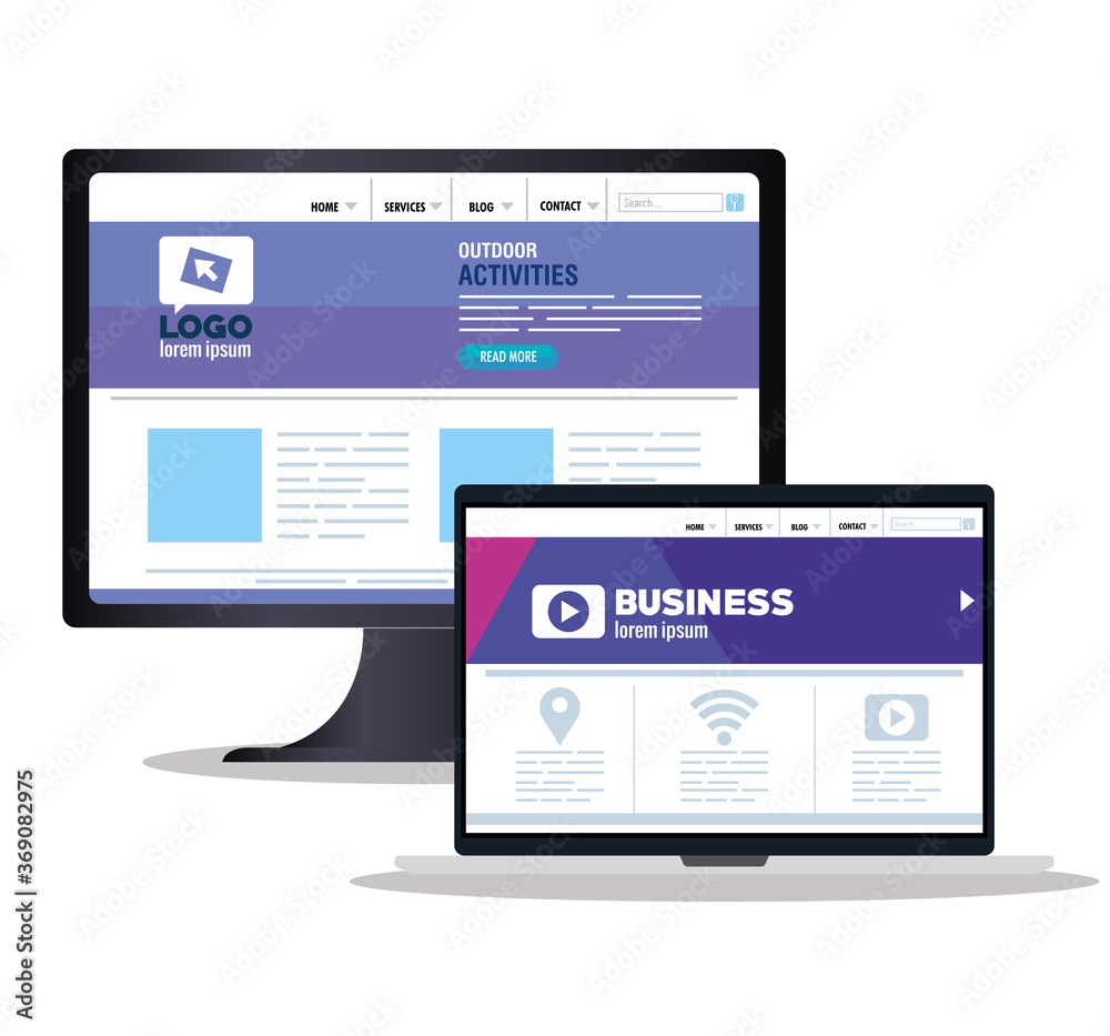 Wall mural : Mockup responsive web, concept website development in desktop computer and tablet device