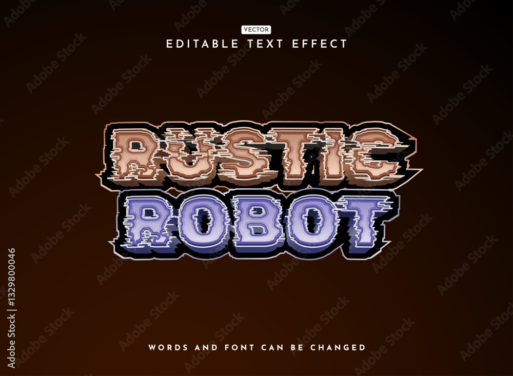 The watermark will not be included on Wall mural.: Modern 3d glitch rustic robot game logo text effect
