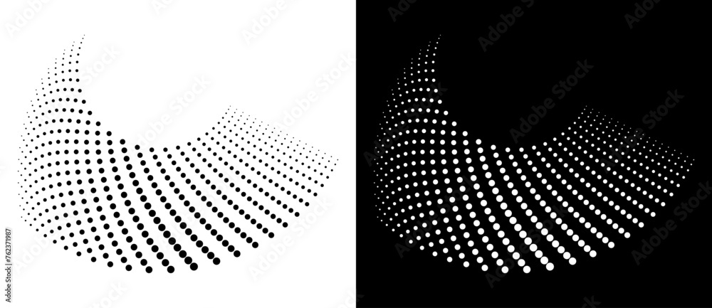 Wall mural modern abstract background. halftone dots in spiral. round logo, design element or icon. a black fig