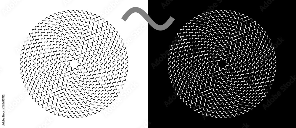 The watermark will not be included on Wall mural.: Modern abstract background - waves in circle form - round logo - design element or icon - black shape on