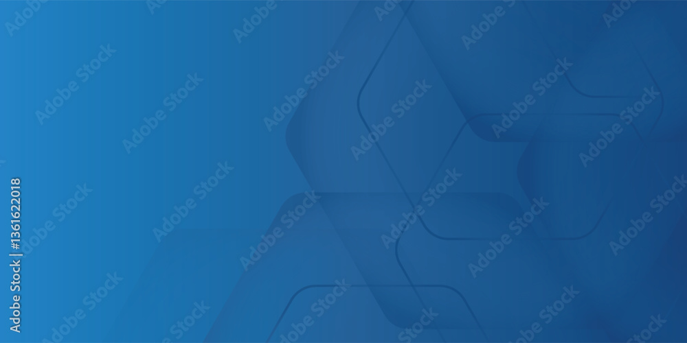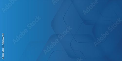 Wall mural modern abstract blue background with glowing geometric lines. blue gradient hexagon shape design. ve
