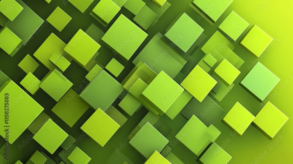 The watermark will not be included on Wall mural.: Modern abstract geometric design with green square shapes on smooth background