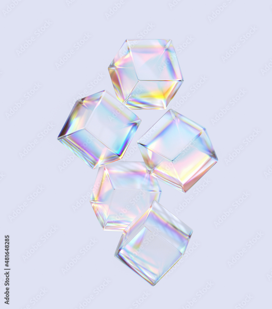 The watermark will not be included on Wall mural.: Modern abstract geometric shapes for poster design, caustic gradient elements, 3d rendering futurist