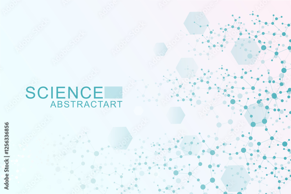 Wall mural modern abstract molecules structure for science or medical background. dna helix or atom visualizati