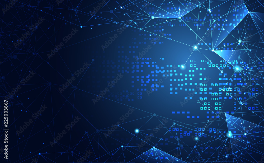 Wall mural : Modern abstract network science connection technology internet and graphic design - on hi tech future