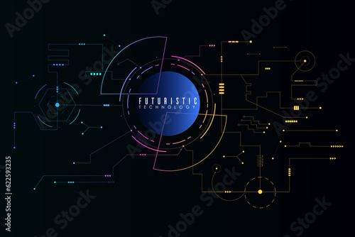 Wall mural : Modern abstract technology of background with elements hi-tech communication in cyberpunk style - fut