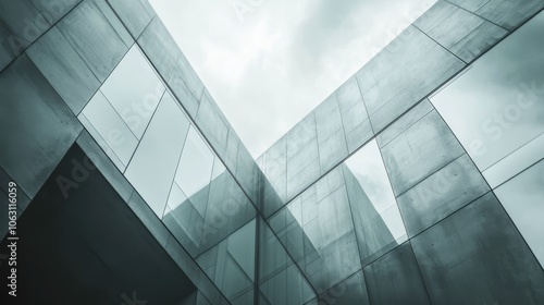 Modern architecture glass and concrete building reflecting cloudy skyWall mural