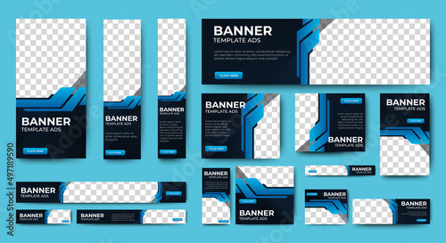 Wall mural modern banner design web template set, horizontal header web banner. modern gradient blue cover head
