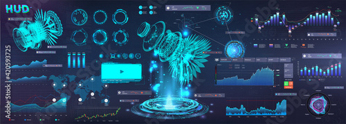 Wall mural modern business elements ui, ux in hud style. futuristic user interface gui 3d objects, infographics