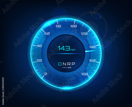 Wall mural modern car speedometer. futuristic speedometer and tachometer for car with speed in miles and transf