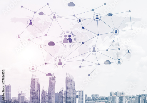 Wall mural modern city and social net as concept for global networking - Wall murals Wall mural modern city and social net as concept for global networking - Wall murals