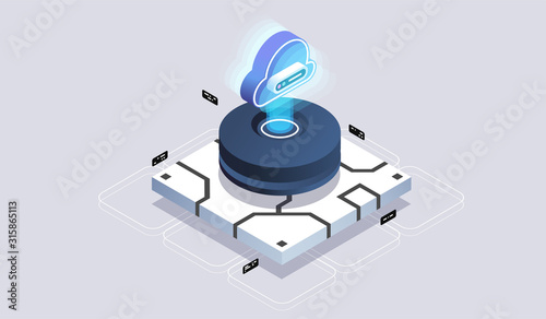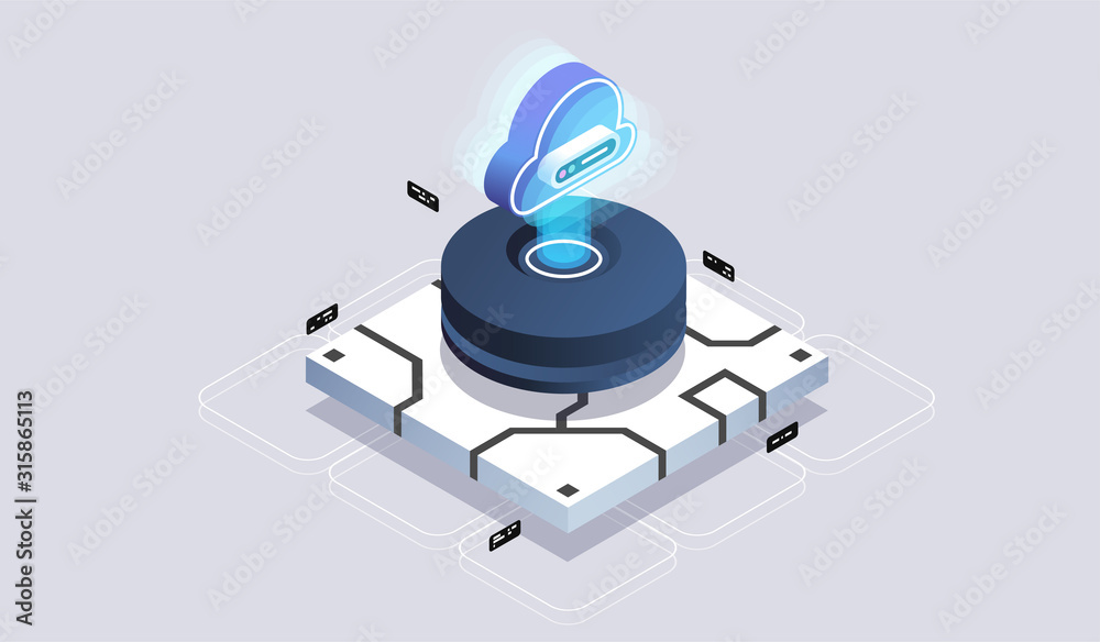 The watermark will not be included on Wall mural.: Modern cloud technology and networking concept - cloud database, futuristic server energy station - da