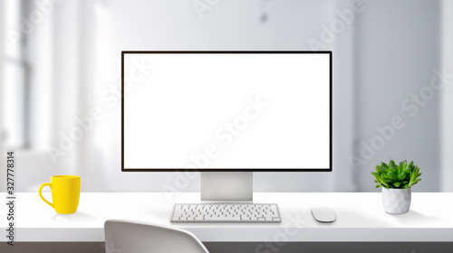 Wall mural modern computer display mockup on work desk with thin edges. professional designer studio concept - Wall murals Wall mural modern computer display mockup on work desk with thin edges. professional designer studio concept - Wall murals