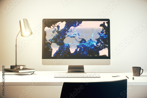 Wall mural modern computer screen with abstract creative digital world map, research and analytics concept. 3d  - Wall murals Wall mural modern computer screen with abstract creative digital world map, research and analytics concept. 3d - Wall murals