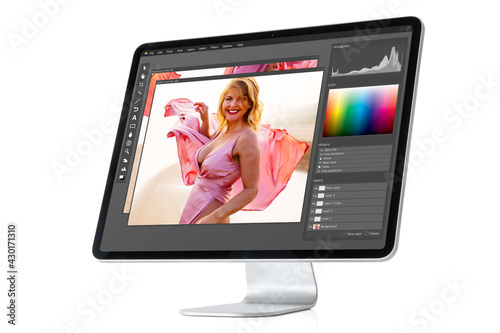 Wall mural : Modern computer with graphic editor software on screen, isolated on white