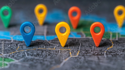 Wall mural modern design customer journey map with colorful location markers on dark background - Wall murals Wall mural modern design customer journey map with colorful location markers on dark background - Wall murals